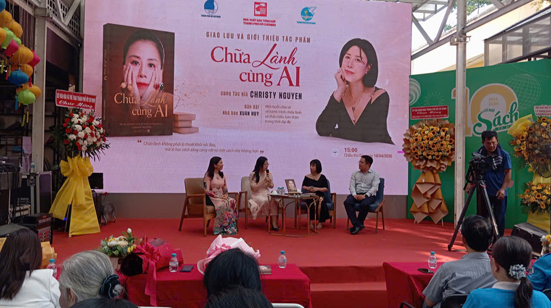 Tác giả Christy Nguyen đã có buổi giao lưu, trò chuyện cùng độc giả tại TP.HCM vào ngày 18/04/2026; với 3.000 giờ trò chuyện cùn Ai và cuối cùng đút kết được cuốn sách “Chữa lành cùng AI”, được NXB Tổng hợp TP.HCM phát hành. Đây là tác phẩm ghi lại hành trình vượt qua khủng hoảng tâm lý thông qua hơn 3.000 giờ trò chuyện với trí tuệ nhân tạo. Sách cung cấp góc nhìn thực tế về việc dùng AI để đối thoại, tự nhận thức và thấu hiểu chính mình, như VITAMIA chia sẻ, đây không phải là thay thế con người, mà là dùng công nghệ để phục hồi sức khỏe tinh thần.